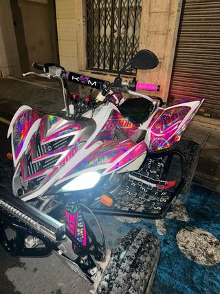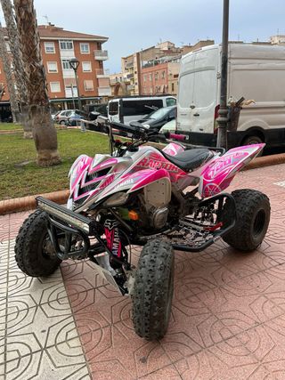 Se vende yamaha raptor 700 NO HAY OTRO IGUAL A LA VENTA Se le han cambiado rotulas , trapecios , y varias cosas de la barra de direccion para que tenga 0juego y 0holguras, reglaje de valvulas ,filtros y aceite aparte de muchos extras como escapes de doble salida dmc los mejores del mercado,vinilos puestos hace dias al igual que el asiento , Parrillas XRW Q1 PRO,barra de led,cubre trapecios nuevos,manillar protaper con suplemento Neumaticos al 90% Se vende por querer comprar banshee o se cambia por banshee y doy dinero si fuese necesario Sin itv , se da escape que es lo unico necesario para pasarla con lo que tiene.