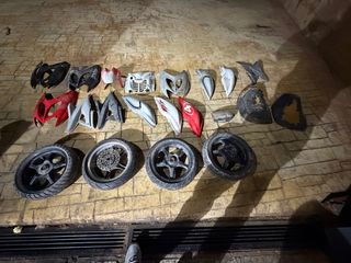 Lote de chapas para Yamaha Aerox. Piezas de carenado. - Chapas de diferentes colores: rojo, gris, blanco y negro. - Incluye varias piezas de plástico. - Algunas piezas tienen adhesivos. Cada 1 a 5€ No se hacen envios!!!!!!!!