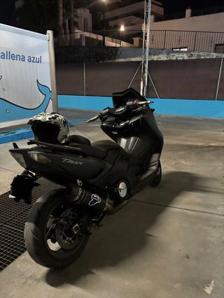 Maxi-scooter Yamaha TMAX en color gris oscuro y negro. Diseño deportivo y elegante. - Cúpula oscura. - Asiento doble. - Escape deportivo. tiene 93000km pero en perfecto estado, se le puso por primera vez variador hace 2000km, chapas nuevas recien puestas mantenimiento echo todos los filtros hace 150km pastillas traseras cambiadas hace 100km, bateria nueva varta hace 300km y espejos deportivo recien puestos, tiene itv hasta 2026, se puede revisar con mecanico de motor esta perfecta con los km que tiene suena redonda, doy todo de serie. acepto prueba mecanica aceptaria cambio por moto de mi interes