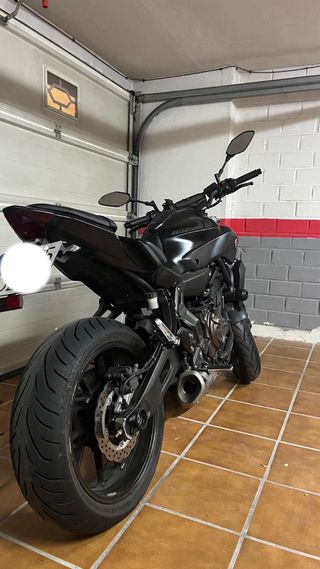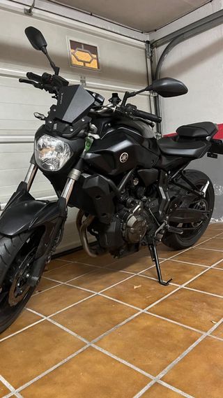 Moto Yamaha MT-07 en color negro muy bien cuidada, ninguna, duerme siempre en garaje y revisiones todas pasadas a tiempo -43.000km -itv hasta junio de 2027 -portamatriculas corto -topes anticaidas -protector del radiador negro de mt-07 -intermitentes led -neumaticos battlax bt023 cambiados en agosto de 2025 -kit de arrastre entero nuevo cambiado en julio de 2025 -manetas negras - entrega de dos llaves mas la llave maestra roja (se entrega tambien con las piezas originales)