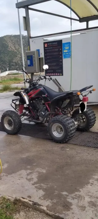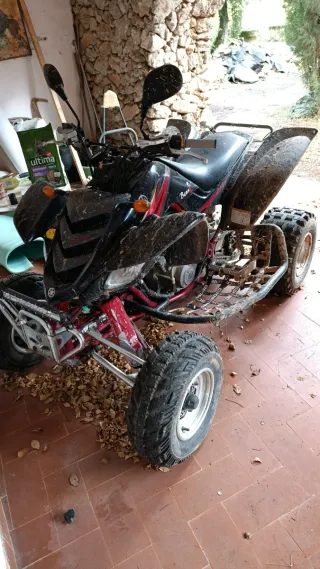 Quad Yamaha Raptor 660. Pocos km con ITV. Aceite y anticongelante nuevos,pastillas traseras y disco nuevo, puños nuevos, fundas amortiguador nuevas. Escape fmf - Modelo deportivo. - Color negro y rojo. - Ruedas todoterreno. Valoro cambios por todoterreno.