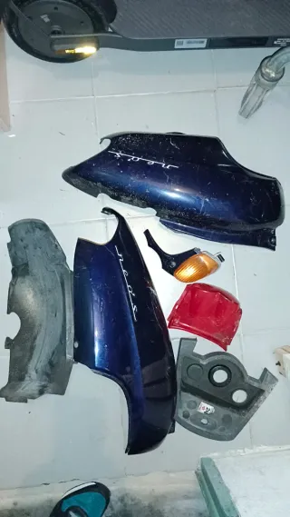 Piezas de carenado para Yamaha Neo's. - Carenado superior azul. - Carenado lateral azul. - Guardabarros delantero gris. - Piloto trasero rojo. - Intermitente naranja.