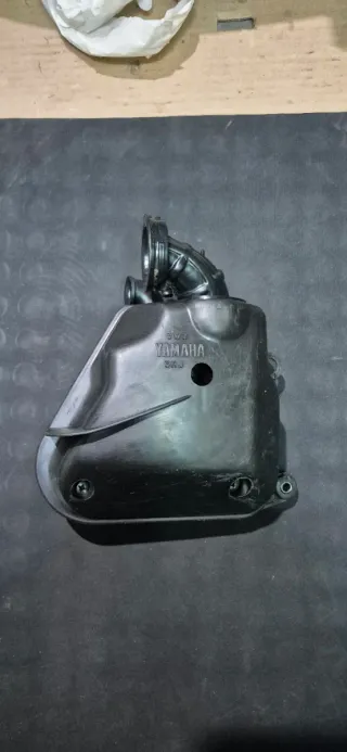 Filtro de aire para Yamaha Aerox original, le falta la espuma de dentro y tiene un poco roto uno de los soportes donde va el tornillo como se ve en las fotos, pir lo demas esta en buen estado - Pieza de plástico negro. - Marca Yamaha grabada.