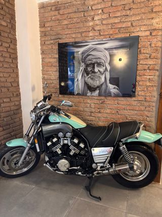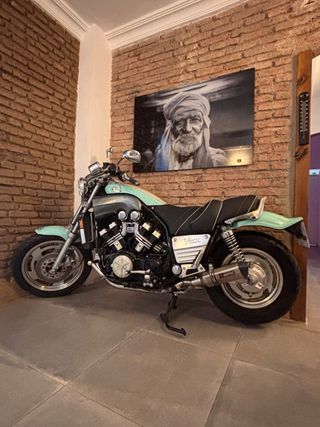 Moto clásica Yamaha VMAX 1200 en buen estado. - Diseño cruiser icónico. - Combinación de colores verde y beige - Transmisión manual - versión americana 140cv - marca en millas
