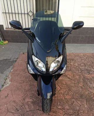 Maxi-scooter Yamaha Tmax 500 de color negro. - Diseño deportivo y elegante. - Parabrisas alto para mayor protección. - Doble faro delantero. ITV hasta el 2027 con 67.000 km lista para disfrutarla .
