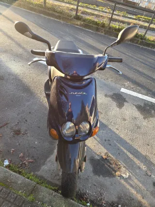 Scooter Yamaha Jog RR en color lila brillante. Juego de carenados nuevos. Itv hasta Septiembre 2027. Un modelo deportivo y ágil. Transferencia incluida. - Diseño deportivo. - Color morado. - Ruedas blancas.
