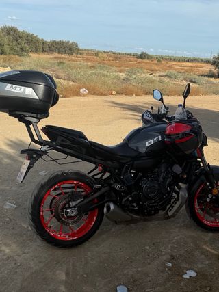 Yamaha Tracer 7 con muy pocos kilometros 11200. Ideal para rutas y viajes moto muy cómoda. Revisiones en casa oficial Yamaha. Vehículo con muchos extras. Puños calefactable. Pantalla gt Baúl givi de 47 litros con respaldo No tiene ningún rasguño, muy bajo consumo ideal para ciudad y carretera por su poco peso manejable. Puedo mandar video