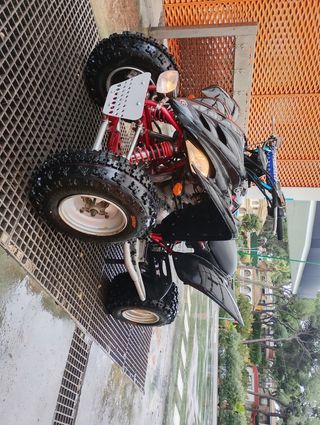 Quad Yamaha Raptor 350 en color negro y rojo. - Quad Yamaha raptor 350 - Caja de cambios manual 5 velocidades y con marcha atrás - Motor hecho entero hace 15 horas . - Listo par coger y disfrutar sin nada que hacerle . - ITV y Seguros vigente . - Ruedas al 95% " recién puestas "
