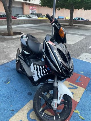 Scooter Yamaha Aerox en perfecto estado. Recién sacada del mecánico para montar cilindro y arreglar todo el sistema de luces y arranque electrico,en la foto aparece sin puños pero se le pusieron después de la foto,neumático trasero para cambiar y delantero en breve sin ITV,no mareantes ni negociadores ofertas absurdas no serán respondidas,acepto cambio por coche o por otra moto de más cc 2tiempos matriculada No leer:KTM,gas gas,exc,49,50,Yamaha,jog,derbi,Aprilia
