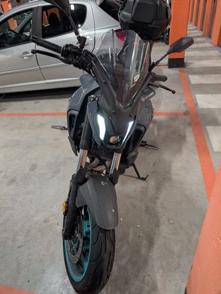 Se vende Yamaha Mt-07 2021 sin limitar (Carnet A) con 9.800kms. Único propietario con las revisiones pasadas en Yamaha oficial. Siempre ha dormido en garaje. No ha tenido ningún golpe ni caída. Neumáticos en buen estado. 2 llaves más la original para poder hacer más copias. Luces e intermentes led. ABS, pintura original. Extras incluidos: - Cúpula pequeña MT-07 original. - Baúl Yamaha original para un casco (con la misma llave con la que se arranca la moto). - Protector de radiador Mt-07. - Topes anticaida PUIG originales La moto se encuentra en Valdemoro (Madrid)