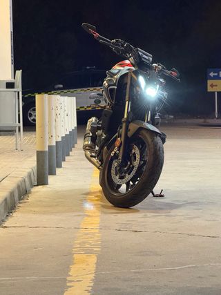 Yamaha MT09 del año 2023. 16.800 km ***Solo vendo, no cambio Gran cantidad de accesorios: - Escape Akrapovic racing line línea completa - Reprogramación en Reprobox Malaga. A2 en papeles, pero deslimitada a 130cv a rueda. Bajada temperatura a la que saltan electroventiladores para mayor seguridad. Velocidad máxima deslimitada. Reprogramación sobreescrita en la de serie. No detectable en ITV. - Amortiguador de dirección - Topes anticaida de doble anclaje - Cúpula ahumada - Portamatriculas corto original Yamaha homologado - Espejos en los puños - Escape de serie incluido - Candado con alarma incluido - Espejos de serie incluidos
