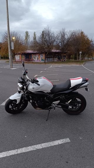 Moto Yamaha estilo naked. Modelo FZ6N (600cc con 98cv). Color blanco con detalles en rojo. La moto tiene 34.100kms, revisada completamente a los 30.800kms. - Ruedas con buen año y poco uso. - Muy bien cuidada y mimada. - Le quedan 7.000kms para próximo mantenimiento. EXTRAS: - Vinilo PPF en deposito. - Retrovisores homologados negros VICMA. - Tapa colin con detalle rojo. - Indicador de marcha. - Portamatriculas corto homologado. - Luz y catadrioptico homologado. - Se entrega en una caja o se monta supresor de 2°catalizador y silencioso final vaciado (no se ha llegado a montar). *Se entrega todo lo original*