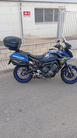 Moto Yamaha Tracer MT 900 blu edition , no tiene ni un arañazo no tiene golpes. Todos los kilómetros en viajes km 59500. Siempre garaje. - Puños calefactables originales _ Pantalla Puig 12 centímetros más alta - Color azul y negro. - Incluye top case SHAD extensible a 58. - Maletas laterales originales con llave de contacto. - Ruedas recién puestas pilot road 4 - Kit de arrastre con 400 kilómetros _ no ha ni que cambiar el aceite lleva 1500 km -Pastillas delanteras con 3000 km .