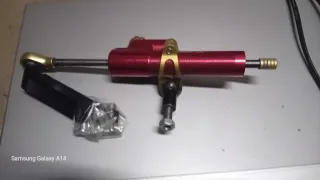 Estabilizador de dirección en color rojo para moto. - Diseño deportivo. - Acabado en aluminio anodizado.