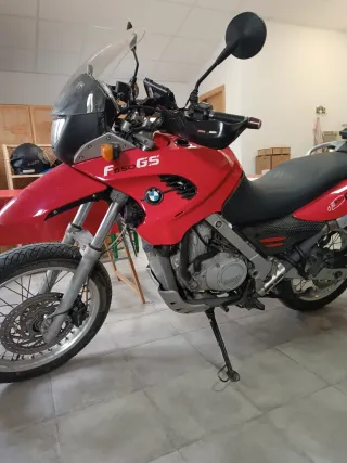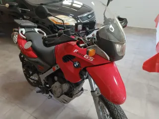 Moto BMW F650GS de estilo aventura en color rojo. Batería nueva ,disco de freno y pastillas nuevas ,embrague nuevo ,99000km , - Diseño robusto y versátil. - Ideal para todo tipo de terrenos.