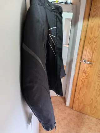 Chaqueta de moto Dainese para hombre, ideal para carretera. - Color negro. - Diseño moderno y funcional. - Marca Dainese visible en la manga. Talla 54 Protecciones de calidad en hombros y codos Cremalleras en perfecto estado Forro interior desmontable Buen estado general