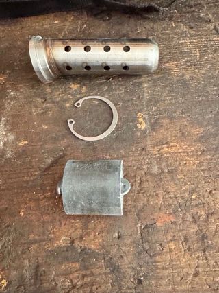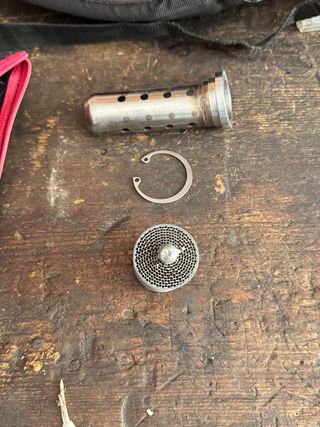 Componentes de escape para moto Zontes. - Tubo perforado de metal. - Anillo de retención. - Filtro con estructura de panal.