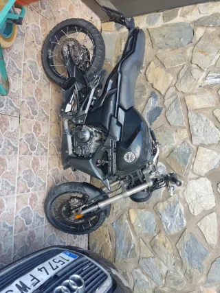 Motocicleta Zontes 125 de color negro. -ni 5000km - Transmisión manual. Empiezo por los desperfectos: -Depósito con unas rayaduras hechas por un pastor alemán. -Embellecedor deposito con plástico despegado porque le cayó gasolina . -guardabarros delantero dañado por las dos únicas caídas con la moto (por no quitar el candado 😅🤣) Por lo demás. Muy pocos km, la cojo muy de vez en cuando, y la saco más para limpiarla que para cogerla. El recorrido más largo que he hecho 50 km. Próxima revisión en septiembre. Batería nueva. Tengo también la chaqueta XL hombre, y chaqueta s/m mujer..