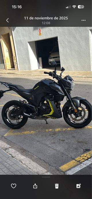 Moto Zontes Z2 con un diseño deportivo y moderno. - Color principal negro con detalles plateados. - Estilo naked. - Transmisión manual. 2050 km Matriculada abril/2025