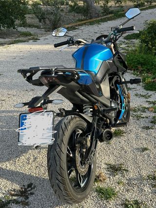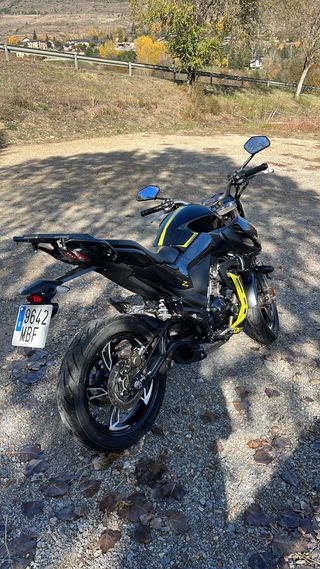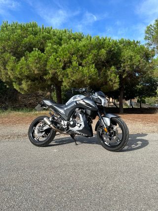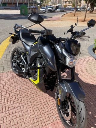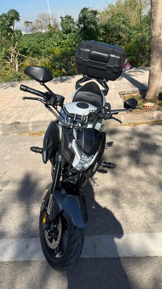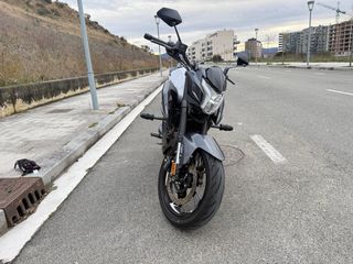 Moto deportiva estilo naked color gris y negro muy cuidadada, siempre duerme en garaje. Moto cómoda y lista para iniciarse en este mundo va genial tanto por ronda y por ciudad. - Año: 2023 - Kilómetros: 10.000km Se me acaba de realizar: - neumaticos mitas nuevos - Kit de arrastre nuevo entero con cadena mejorada y plato con 3 dientes menos para que estire mas en largas la moto. - cambio de aceite recien echo - pastillas delantera nueva Extras: - Porta matriculas corto con matricula nueva - Escape Leovince (sin homologar) valorado en 700€ - Espejos cortos DOY TODOS LOS OBJETOS DE SERIE. Precio algo negociable