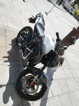 Pocos kilómetros e impecable de motor. Tuvo caída lateral pero sólo rompió plásticos y ya están repuestos y reparados. Aceite y filtro recién cambiado, filtro de aire nuevo, liquido de frenos nuevo, batería nueva, retenes y aceite de suspensión nuevos. La moto tiene ABS para ambas ruedas. Opción ECO para bajar consumo, aunque apenas consume. Pequeño bollo en el depósito de la caída, se ve en la foto. Ruedas al 60%. ITV hasta octubre de 2027.