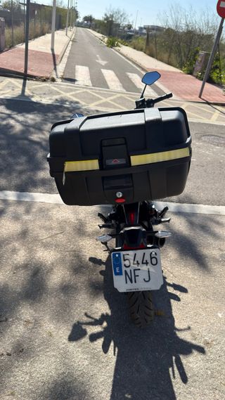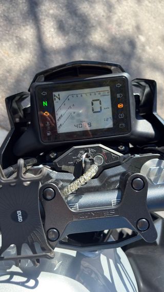 La vendo por cambio de cilindrada. primera ITV recién pasada, moto en buen estado. Solo le he cambiado la cadena porque la de serie no era muy buena, el cable de embrague, y uno de los protectores laterales. Pneumáticos Pirelli cambiados en Noviembre del 2025, en muy buen estado. Tiene algunos rasguños que se pueden apreciar en las fotos, y los simbolos de la parte derecha del manillar un poco borrados. Solo ha sufrido un par de caidas en parado, ninguna en marcha. La moto funciona muy bien y después de tantos kilometros no me ha dado ningun problema. 37.280Km Ideal para uso diario o primera moto, consumo muy bajo.