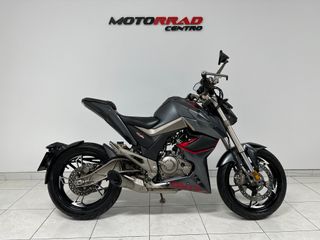 Moto Zontes U125 en buen estado. - Diseño moderno y deportivo naked. - Color gris oscuro con detalles en azul y bronce. - Ruedas de aleación. - Frenos de disco. - Abs. - Luces led. - 14,5cv. Abstenerse propuestas absurdas, gente seria por favor. Unica propietaria y todo hecho en la casa (esta de serie, me refiero al rodaje). Tiene 3.600kms y como veis en las fotos, siempre esta en el garaje. La doy con las dos llaves y toda la documentacion en regla, con seguro. Regalo alarma, soporte de maleta shad y la maleta sh39 (ultima foto). Se vende por no usar como ven las ruedas tienen las lineas de rodaje aun marcadas.