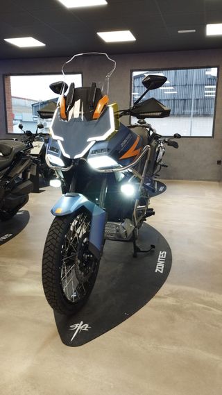 Moto Zontes 368G. Diseño moderno y robusto. - Guardabarros delantero con detalles en azul. - Defensas con faros auxiliares. - Parabrisas regulable. - Llantas de radios con sensor de temperatura/presión. Precio final hasta el 31/12/2025 de sólo 4888€. sin sorpresas! (indicándo que la quieres comprar aquí)