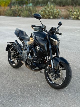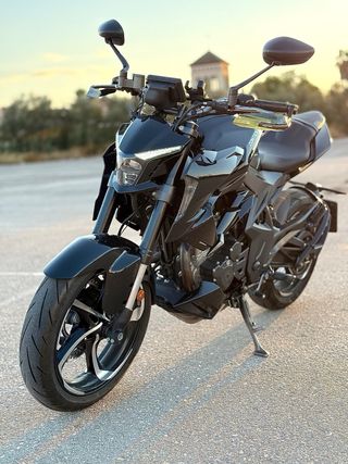 Moto Zontes 350R - Carnet A2 - Color negro. - Garantia hasta 2026. - 350cc. - Consumo medio 3,8 litros . - 13.300 km. - Cadena reforzada nueva. - 2 Llaves Electronicas. - Faro delantero LED. - Panel Led con Puños Iluminados. - Frenos de disco delanteros y traseros J.Juan - Venta por cambio de Cilindrada.