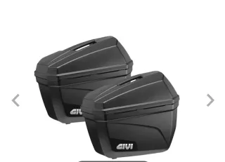 Par de maletas laterales Givi en color negro. Soportes givi incluidos - Diseño robusto y aerodinámico. - Asa integrada para facilitar el transporte. PARA Kawasaki vulcan s - Logo de la marca Givi visible.