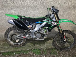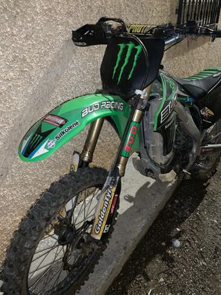 Moto de motocross Kawasaki KX 250 F 2008. - Diseño deportivo en verde y negro. - Neumáticos todoterreno. -Motor practicamente nuevo recien terminado pocas horas ,faltara mirarle freno trasero (purgar) . -Cambio por 4x4 , furgoneta, buggie , tractor etc.
