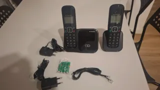 Se venden dos teléfonos inalámbricos, uno de la marca Alcatel y otro de la marca Gigaset. Ambos son de color blanco y negro respectivamente. - Teléfono Gigaset A116. - Teléfono Alcatel. - Bases de carga incluidas.