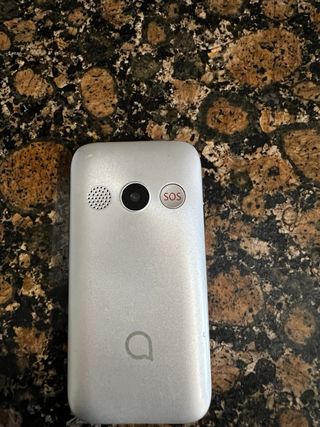 Teléfono móvil Alcatel en color plata, ideal para llamadas y mensajes. - Incluye cargador. - Pantalla a color. - Teclado numérico.