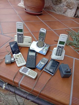 Colección de teléfonos móviles antiguos, ideales para reparar o para piezas. Algunos teléfonos muestran señales de uso. No vendo sueltos. Precio orientativo. Acepto ofertas razonables. - Incluye 8 teléfonos de diferentes marcas y modelos. - Algunos teléfonos son de tipo móvil plegable. - Otros son teléfonos inalámbricos con base. Funcionan la mayoría pero no tengo cargador para ellos, ni pilas recargables para los que lo necesitan.