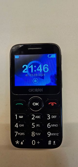 Teléfono móvil Alcatel con teclas de letras grandes, ideal para una fácil visibilidad. - Diseño compacto y ligero. - Pantalla clara para una lectura sencilla. Ideal para hombres mayores Tiene la linterna y radio Tiene on botón de la tecla llamada de imergencia Es libre-funciona perfectamente