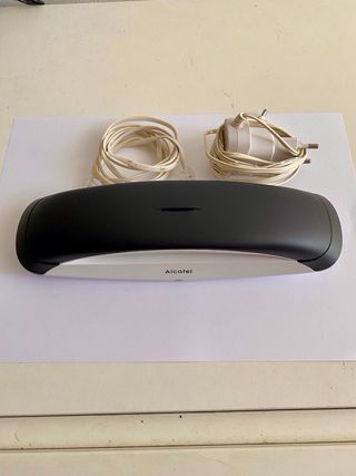 Teléfono fijo Alcatel de color blanco. Está en buen estado. - Incluye cable telefónico. - Teclado numérico con fotos. - Diseño compacto y elegante.
