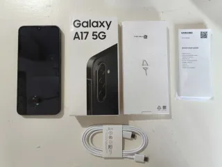 Teléfono móvil Samsung Galaxy A17 5G, completamente nuevo y en su caja original. SOLO EMTREGA EN MANO. PRECIO NO NEGOCIABLE - Incluye cable de carga USB-C. - Herramienta para extracción de SIM. - Guía de inicio rápido.
