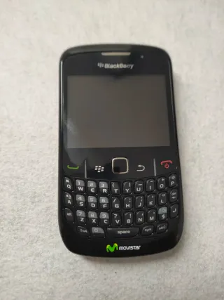 Teléfono móvil BlackBerry Curve 9300 con diseño clásico y teclado QWERTY. - Logotipo de Movistar en el frontal. - Pantalla a color. - Teclado físico completo.