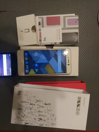 Teléfono móvil Bq Aquaris X5 Plus en color dorado y rosa. - Pantalla de 5 pulgadas. - Cámara trasera de 13 MP. - Cámara frontal de 8 MP. - Batería de 3200 mAh nueva.