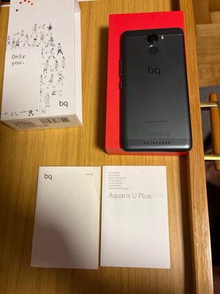 Teléfono móvil BQ Aquaris U Plus en color gris. Se encuentra en buen estado. - Pantalla de 5 pulgadas. - Cámara trasera de 16 MP. - Batería de 3080 mAh. - Sensor de huellas dactilares.