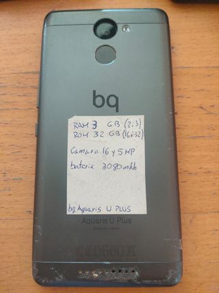 Teléfono móvil BQ Aquaris U en color negro. Diseño elegante y compacto. Tiene Sim de Jaztel/Orange - Pantalla nítida. - Cámara frontal y trasera. - Batería de larga duración.