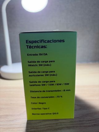 Base de carga inalámbrica multifuncional para tus dispositivos. Es una estación de carga inalámbrica 3 en 1. Sirve para cargar simultáneamente un teléfono móvil compatible, un reloj inteligente (como un Apple Watch) y auriculares inalámbricos (como los AirPods) en un solo lugar y sin cables. El primer paso es conectar la estación de carga a la pared utilizando un adaptador de corriente. Es crucial usar un adaptador de 9V3A/2A o 5V3A si se van a cargar los tres dispositivos a la vez. Se colocan los dispositivos compatibles con carga inalámbrica (tecnología Qi o similar) en las áreas designadas de la base.