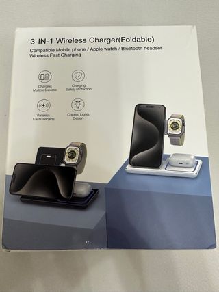cargador inalámbrico 3 en 1 plegable y giratorio 360°, totalmente nuevo sin abrir / precintado. ✅ Carga iPhone + Apple Watch + AirPods ✅ Carga rápida inalámbrica hasta 15W ✅ Diseño plegable ideal para viajes ✅ Base rotatoria 360° (se puede usar como soporte) ✅ Perfecto para escritorio o mesita de noche 📦 Estado: nuevo a estrenar, sin usar 💡 Lo vendo porque tengo otros cargadores y no lo necesito.