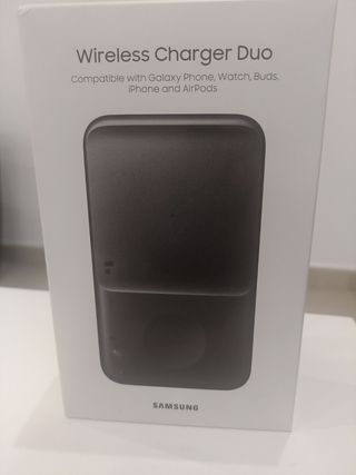 Cargador inalámbrico duo/ wireless charger duo original Samsung. Compatible con teléfono galaxy, watch, buds, iPhone y airpods Totalmente nuevo sin estrenar ni abrir. Se compró y pasó el tiempo de devolucion