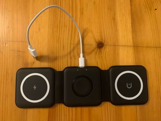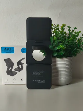 Cargador magnetico inalambrico 3 en 1 USB-C. Soporta la carga simultanea de varios dispositivos (iphone, iwatch, airpods). Diseño plegable, facil de almacenar. En perfecto estado.