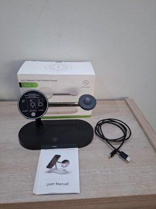 Base para cargar el iPhone, AirPods y Appel watch, Qi cargador rápida, compatible con iPhone 13/12/11 Pro 12 pro Max/XR/XS/X/8, iWatch Series SE/7/6/5/4/3. Sin apenas uso, nuevo con caja y todo el embalaje en perfecto estado.