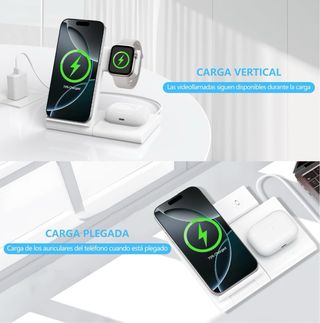 NUEVA SIN ESTRENAR. PRECINTADS IDEAL PARA REGALAR. Base de carga inalámbrica en perfecto estado. Es un cargador 3 en 1 para iPhone, Apple Watch y AirPods. - Carga rápida y eficiente. - Compatible con varios modelos de iPhone, Apple Watch y AirPods (en fotos concreta) - Diseño elegante y compacto. - Carga vertical u horizontal.