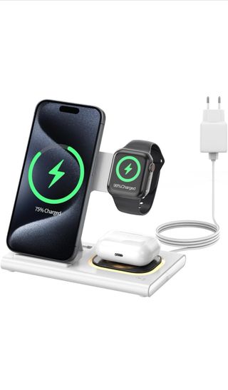 Base de carga para iPhone, AirPods y Apple Watch. sin cables hay que usar los originales o compatible es solo la base - Diseño elegante y compacto. - Carga simultánea de hasta tres dispositivos. 👍 Entrega en mano en mostoles o envio 💶 Descuento o envio gratis si combinas articulos de mi perfil ✅ vendedor confiable y articulos de calidad, mira mis votos y guarda mi perfil para novedades