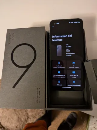 Teléfono móvil Asus Zenfone 9 en color negro con 128GB de almacenamiento con usos de desgaste en los laterales como de muestra en la imagen pantalla nítido sin rasguños nunca reparado todo original. - Caja original. - Cargador. - Cable USB. - 2 Funda protectora originales. - 1Protector de pantalla. - Manual de usuario.