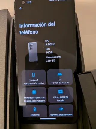 Teléfono móvil Asus Zenfone 9 en color rojo. Batería y tapa trasera recién cambiadas por unas nuevas. Tiene marcas de roces en el marco metálico como se ve en las fotos. Por lo demás funciona genial, es un movil compacto y muy rápido. Se entrega con la caja, instrucciones, cargador, y dos fundas (la que venia con el movil sin estrenar y otra de silicona azul) - Pantalla AMOLED de 120 Hz. - 256 gb de almacenamiento - 16 gb de ram - Batería de 4300 mAh. - Altavoces estéreo duales.